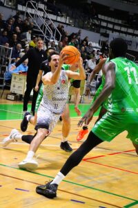 Imágenes del partido de la décimo primera jornada de liga regular celebrado en el Pabellón Municipal Ciutat de Castelló el 14-12-2025 entre Amics Castelló y Bueno Arenas Albacete Basket.